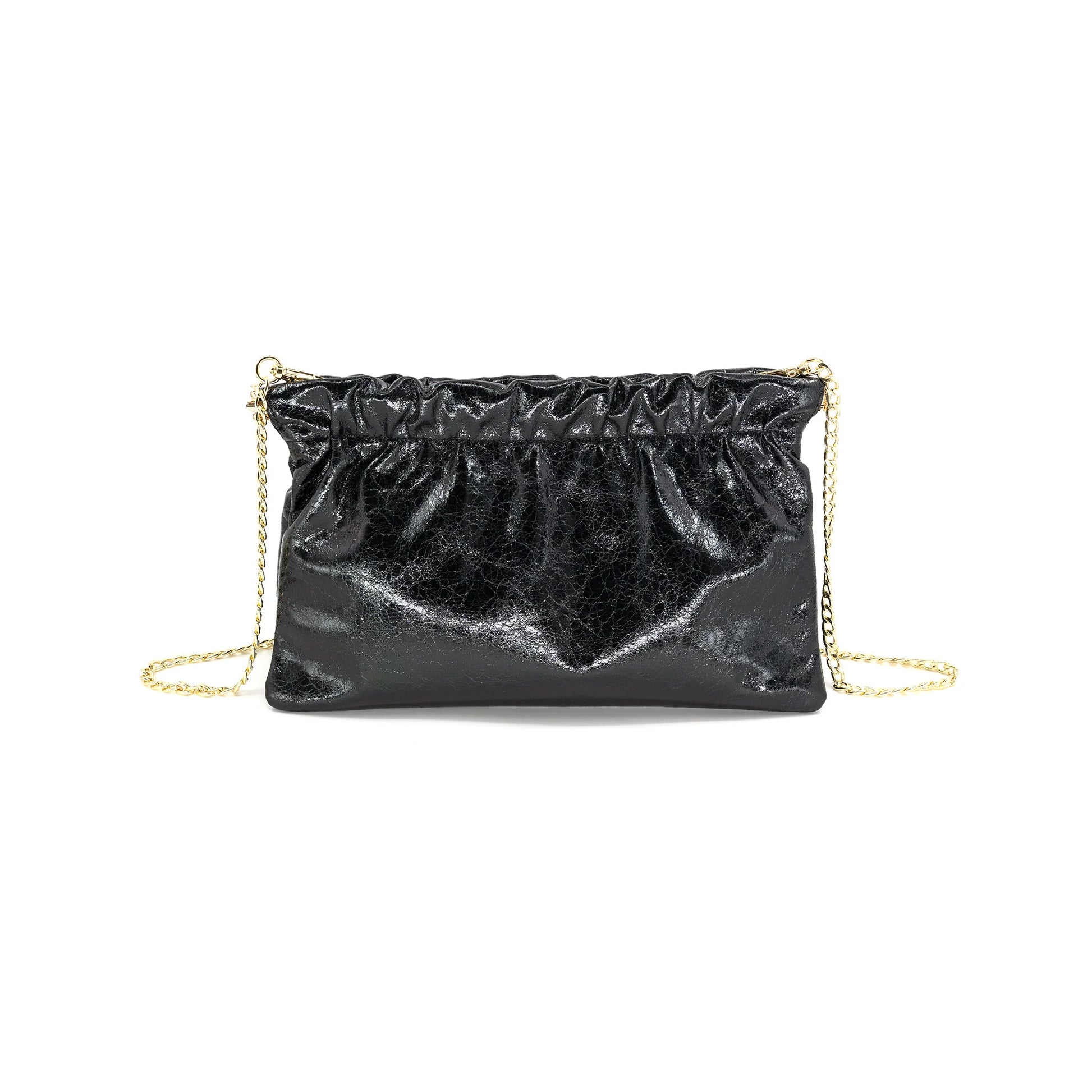 Includes a chain for use as a crossbody.