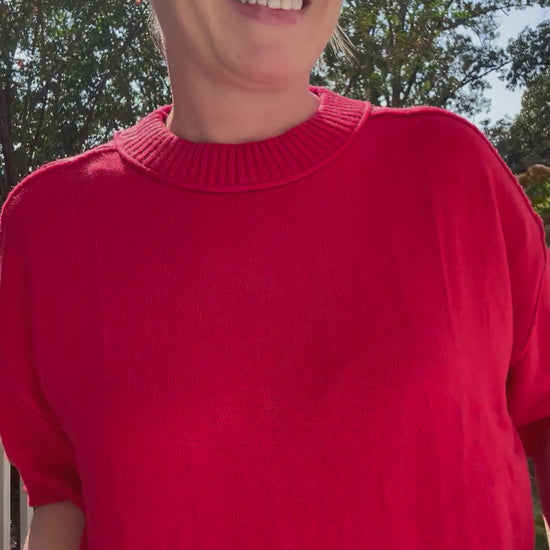 Crew-Neck Drop Shoulder Sweater in Red