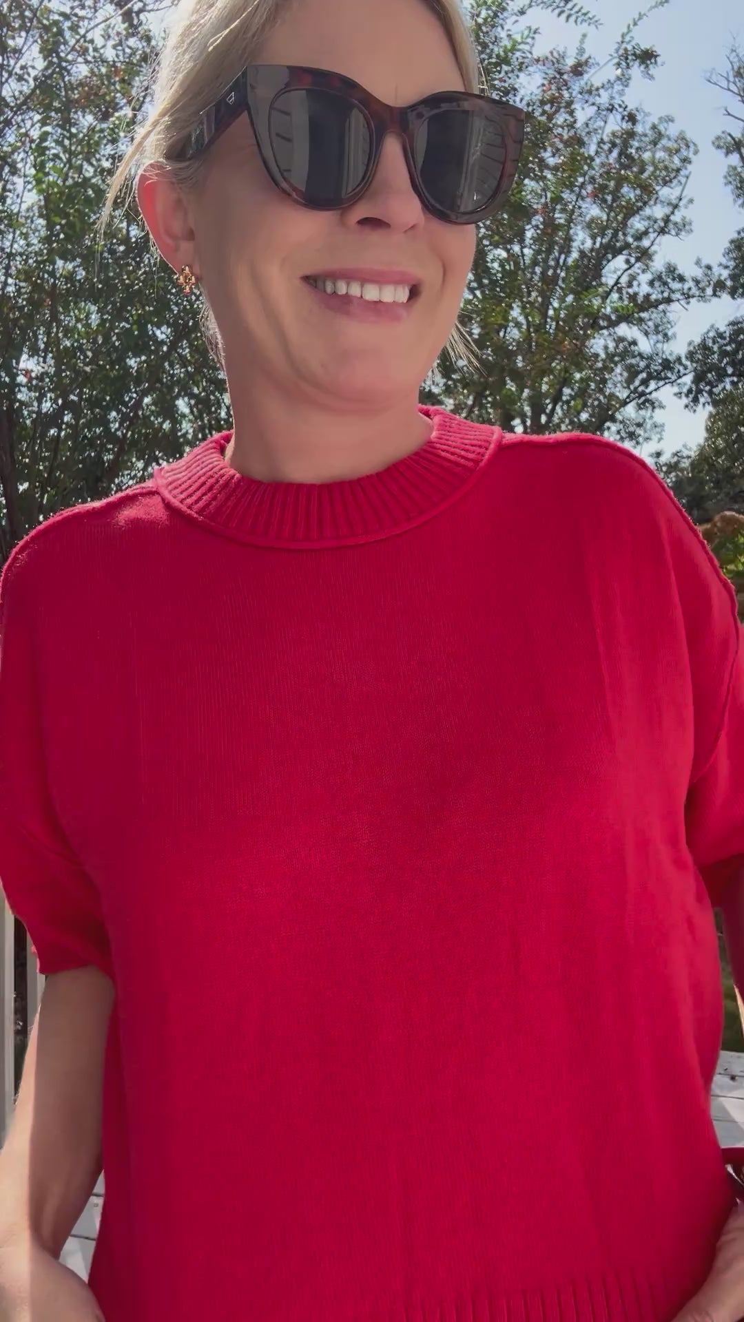 Fit: TTS with an oversized fit. Leslie is wearing a size small.