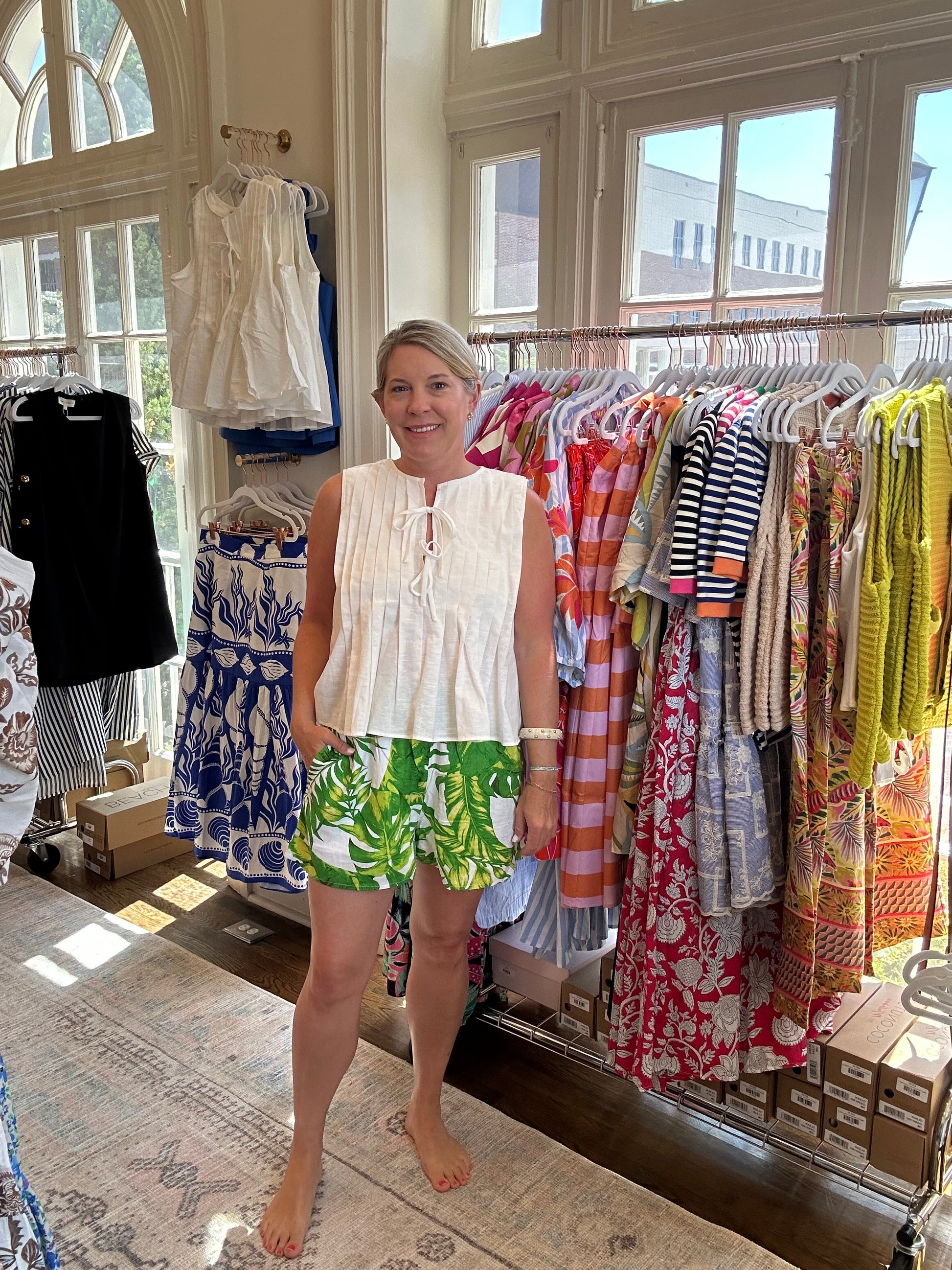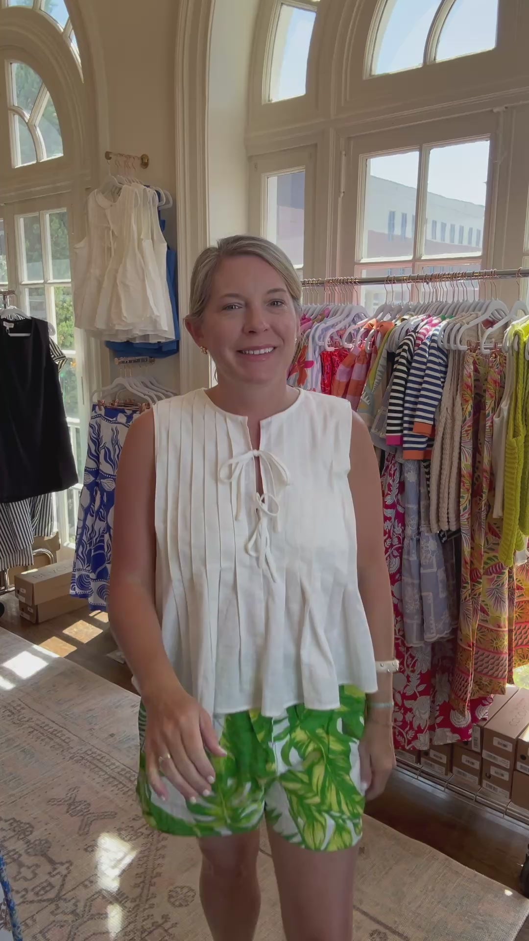 The perfect pair of shorts for all summer long! Palm print design. Elastic waistband, side pockets.