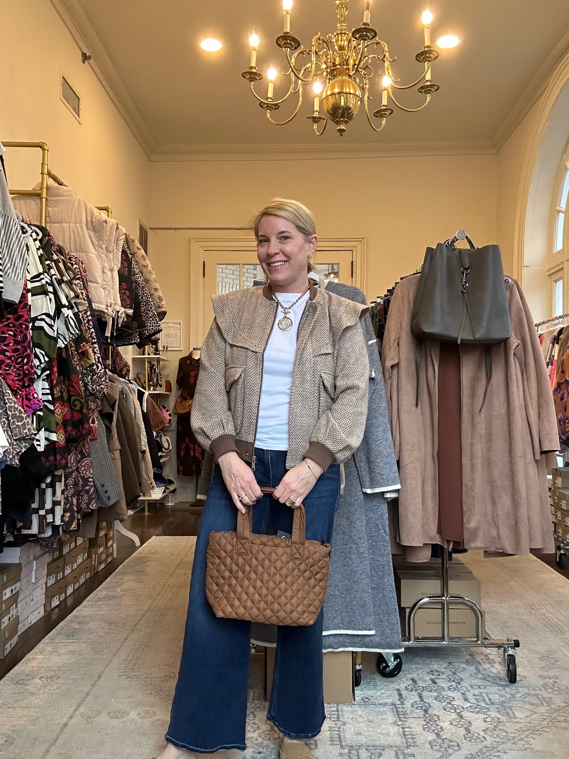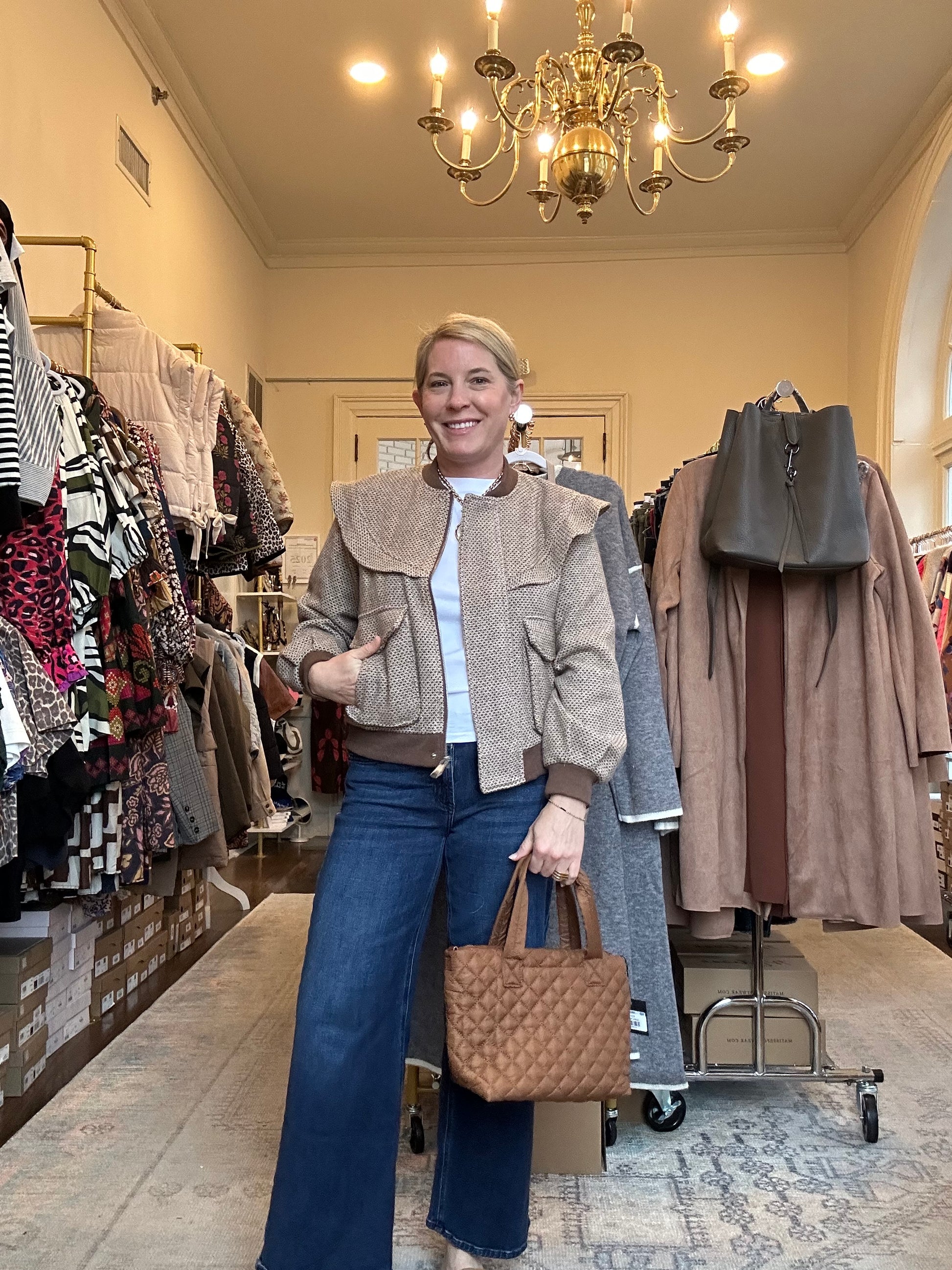 Fit: Slight oversized fit. Leslie is wearing a size small.