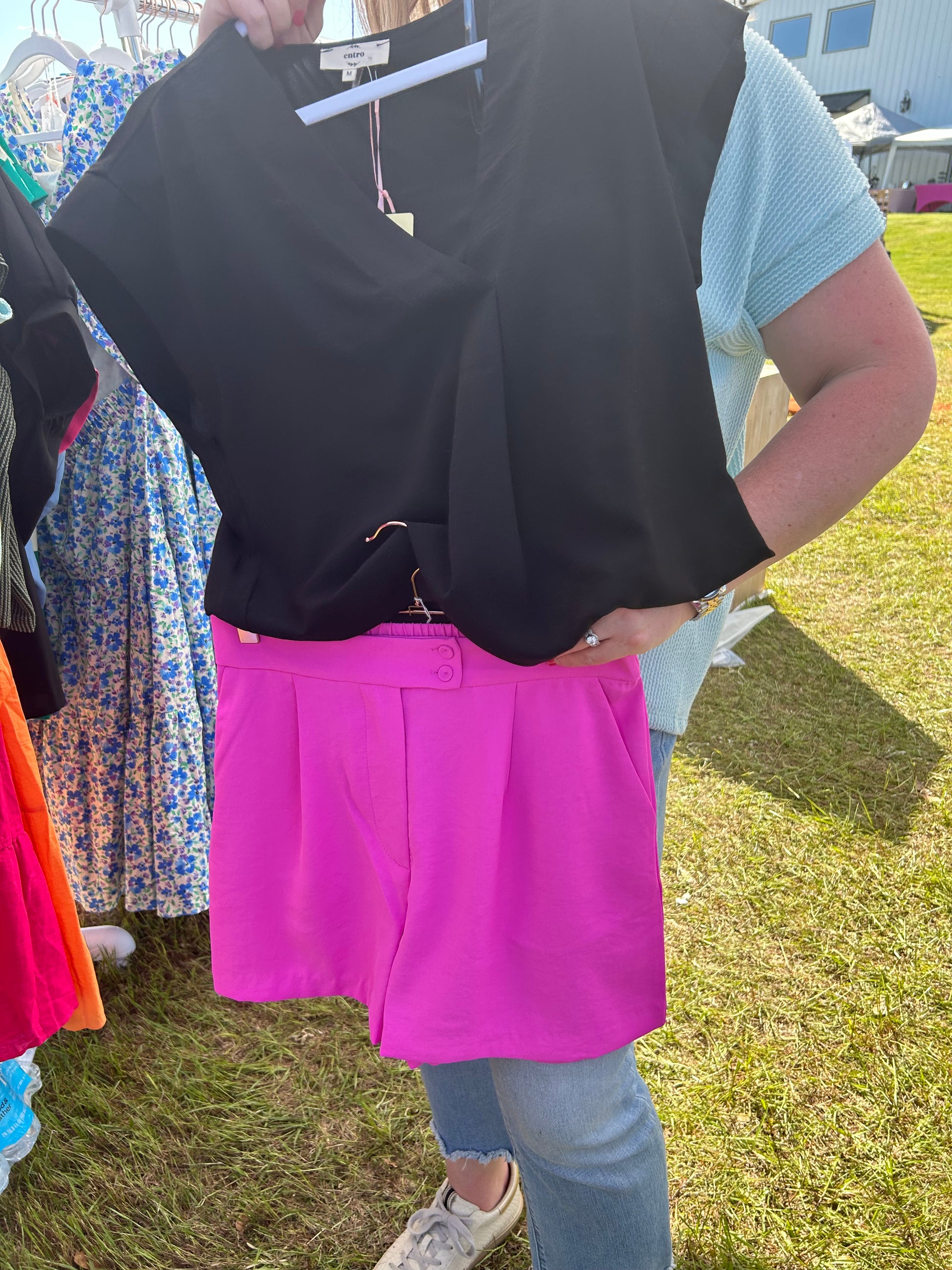 Keep your spring-to-summer style polished with these tailored shorts crafted from recycled materials. The pair sits high on the natural waist, accented by an extended button tab, pleat detailing, and an elasticized back waistband for a feel-good fit.