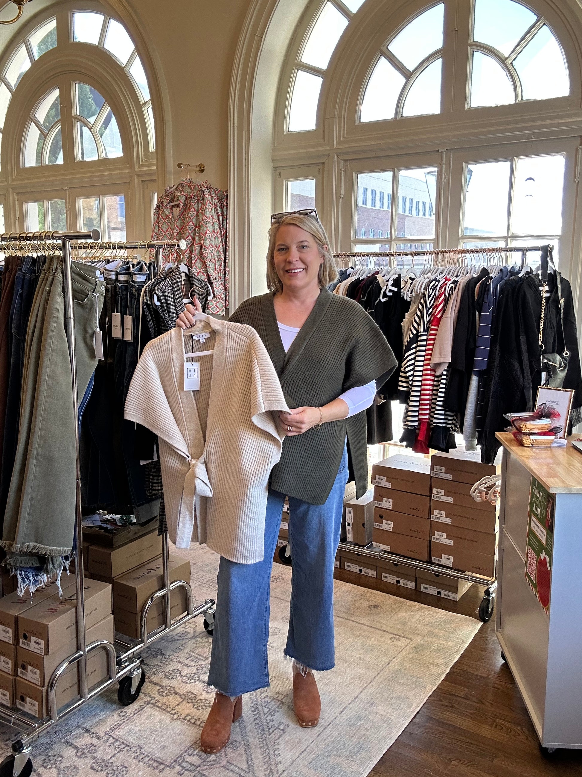 A chic layered essential featuring a soft ribbed knit, relaxed cape-inspired sleeves, and a flattering wrap-style tie waist. Effortlessly polished over a turtleneck or blouse, this neutral beauty elevates everyday denim and looks just as refined with tailored trousers. Cozy, versatile, and perfect for transitional weather.Ā