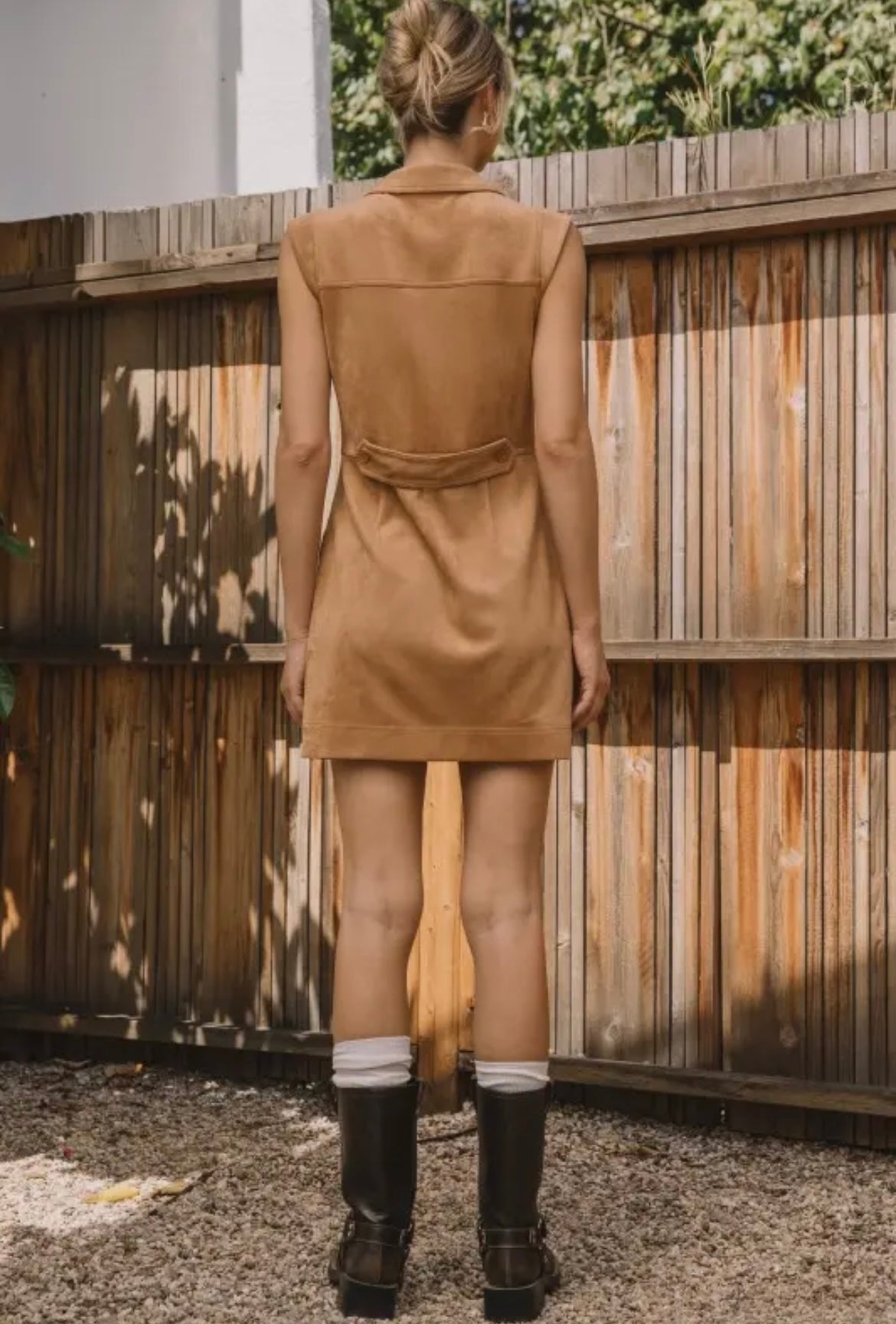 Sleeveless Faux Suede button down dress