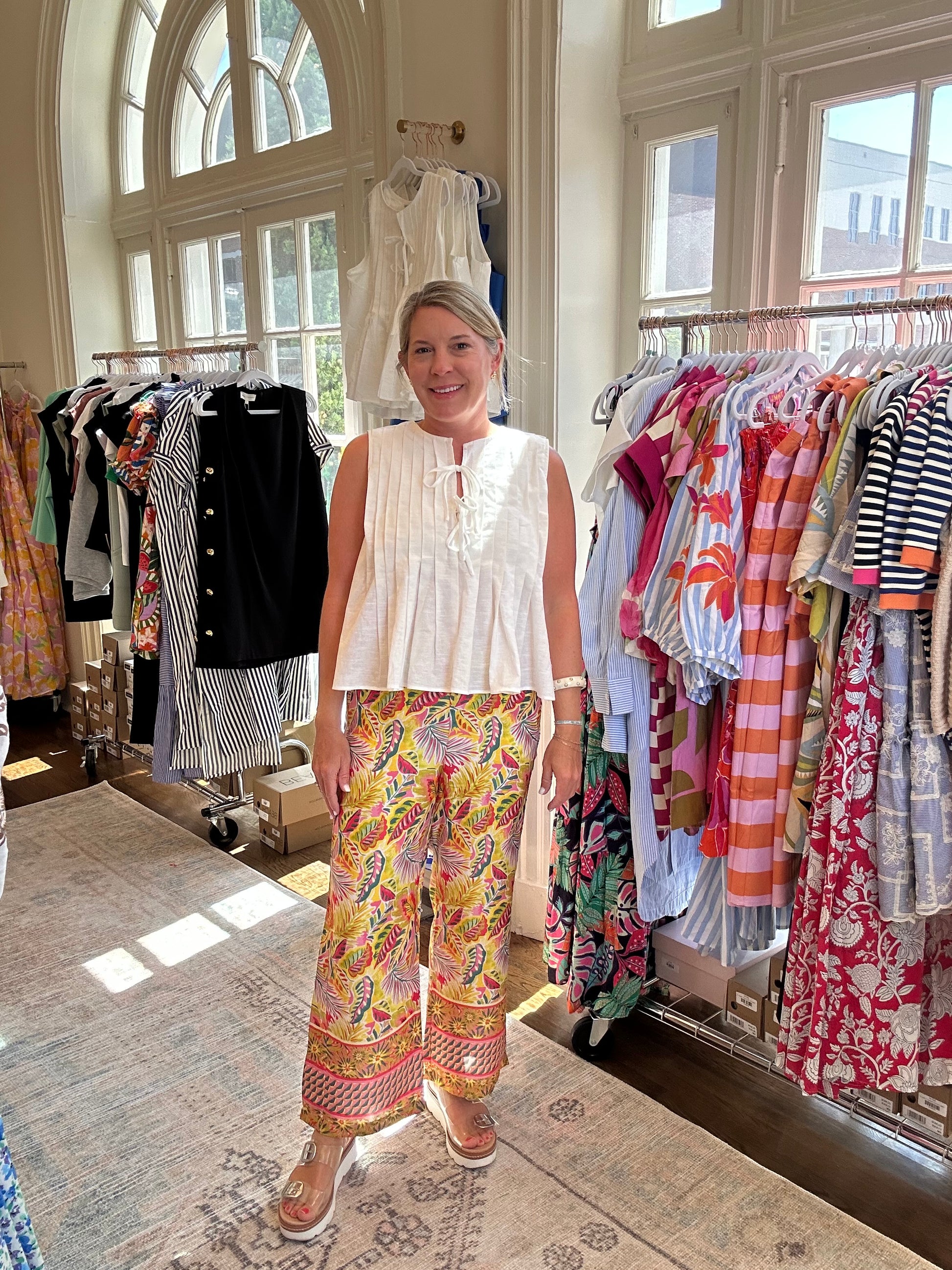 Turn heads in our Karlie Tropical Satin Pants. Dress them up or dress them down! Pair with our Karlie bodysuit!